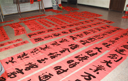随着春节的临近,1月26日上午,宝丰县香山书社半岛最新官网(中国)有限公司官网集团开展义写春联活动,提前送上新春祝福,受到广大职工的热烈欢迎。这是多年来,大地集团与宝丰县香山书社联手,让书法走进企业,让艺术助力企业文化建设的又一活动。 虽然外面冰天雪地,大地集团一楼会议室却热闹非凡,翰墨飘香,写春联的案桌围满前来欣赏的职工们,有的在精心挑选自己喜欢的春联,有的主动帮忙叠红纸、扶春联、晾春联, 现场一片欢声笑语,喜气洋洋。书法家们屏气凝神,挥毫泼墨,一幅幅行云流水、遒劲有力、潇洒俊逸的书法作品跃然纸上,象征着吉祥、喜庆、富贵,平安的春联,赢得大家的交口称赞和争相索要。半天功夫,300多幅春联被一抢而空。 “毛笔写的春联更有意义、更有年味”。一位员工拿着刚写好的春联爱不释手。此项活动不仅传递着广大员工对新年的美好期盼,也让员工感受到集团的人文关怀,营造温馨和谐的新春文化氛围。 义写春联现场