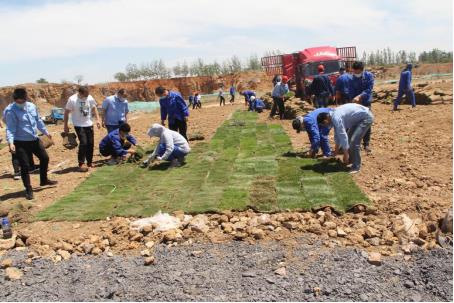 经过一天的辛勤劳动,共种植草皮15000余平方米,为矿山披上了一层浓浓的绿衣,为大地增添了无限生机。不仅锻炼了员工体质,同时,也使大家体验到了劳动的快乐,增强了员工的凝聚力。