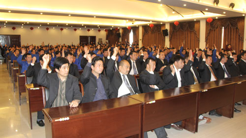 2012年4月6日上午,宝丰县第十四届人大代表发改口二选区选举大会在大地公司会议室隆重举行。大地集团董事长张彪、总裁崔泉发等集团领导及县选区督导员出席了大会,集团各单位近300人参加了主会场选举,会议由集团党委副书记、副总裁王福文主持。 选举采用无记名投票的方式,实行差额选举的办法。通过投票,集团董事长张彪、总裁崔泉发当选为宝丰县第十四届人大代表。