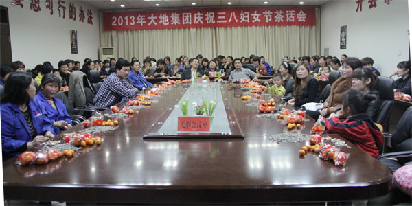 为使女工度过一个愉快而有意义的节日,2013年3月8日里晚,大地集团由工会组织举办庆祝 “三八”妇女节茶话会,100多名女同胞欢聚一堂,共同庆祝属于她们自己的节日。集团党委副书记王福文到会祝贺。 茶话会上,王书记首先向全体女同胞们致以节日的问候和美好的祝愿!他说:“多年来,广大女同胞自强不息,踏实工作,敬业奉献,积极投身于各项工作中,为集团的发展起到了半边天的作用。希望女同胞们继续发扬吃苦耐劳精神,在各自的岗位上发挥更大的作用。 工会副主席马海燕在发言中表示,女同胞们将以饱满的热情,辛勤的劳动,与公司同发展,同进步,一起创造更加美好的未来! 为了给茶话会增添热闹的气氛,会上还进行了猜谜、卡拉OK等节目,女同胞们踊跃抢答,以获得一份精美礼品。随后的环节,大家一展歌喉,激越动听的歌声赢得了阵阵掌声。顿时,掌声、笑声、欢呼声响成一片,这里成了一片欢乐的海洋。 在轻松愉悦的氛围中,大家一边品尝着各种美味糖果,一边谈笑风生,整个茶话会在欢快热烈、其乐融融中结束。