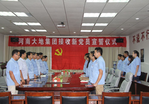 “我志愿加入中国共产党,拥护党的纲领,遵守党的章程……”7月19日下午,大地集团接收新党员宣誓仪式在中控三楼会议室举行,来自集团各党支部的30多名新老党员参加宣誓仪式。集团党委副书记闫中安出席。 宣誓仪式在雄壮的《国际歌》声中开始,现场气氛热烈而严肃。30多名新老党员列队整齐,面向鲜艳的党旗,纷纷举起右手,新党员庄严宣誓,老党员重温誓言,充分表达了大家为党的事业奋斗终身的决心和愿望。 新党员代表张艳乐作了表态发言,老党员代表王永普对新党员的加入表示祝贺!党委副书记闫中安作了总结讲话,并对新党员提出殷切的期望,他希望新党员要永远记住今天这个光荣的日子,牢记党的誓言,履行党的职责,切实把为共产主义奋斗终身的这句誓言,落实到具体工作中去,以实际行动去践行一名共产党员的光荣使命。