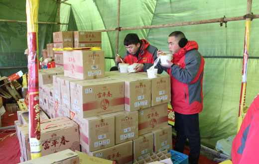 工作人员简单用餐