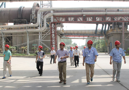 在中控三楼会议室,公司总经理王永普就安全生产标准化开展情况向各位专家进行了汇报。随后,评审组分为二组,一方面深入到烧成车间、余热发电、脱硝车间等生产现场进行实地查看,对生产作业区域的安全警示标牌、安全防护措施、应急处理设施以及安全管理制度等进行了全面细致的检查验收。另一方面仔细审阅安全标准化的各类台帐和相关资料。