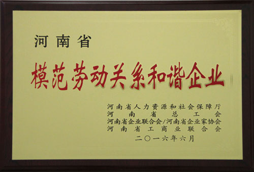 首页 >> 半岛最新官网(中国)有限公司官网 >>资质荣誉 >> 河南省模范劳动关系和谐企业