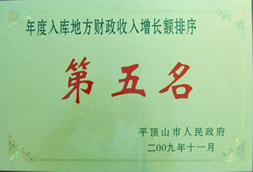 首页 >> 半岛最新官网(中国)有限公司官网 >>资质荣誉 >> 年度入库地方财政收入增长额排序第五名