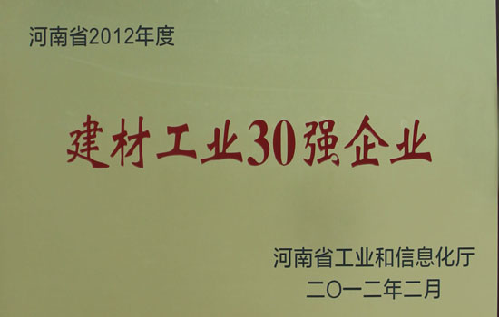 首页 >> 半岛最新官网(中国)有限公司官网 >>资质荣誉 >> 河南省2012年度建材工业30强企业