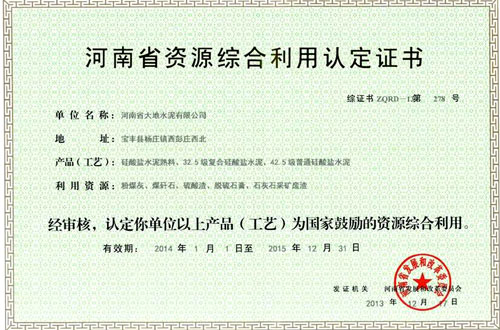 首页 >> 半岛最新官网(中国)有限公司官网 >>资质荣誉 >> 河南省资源综合利用认定证书